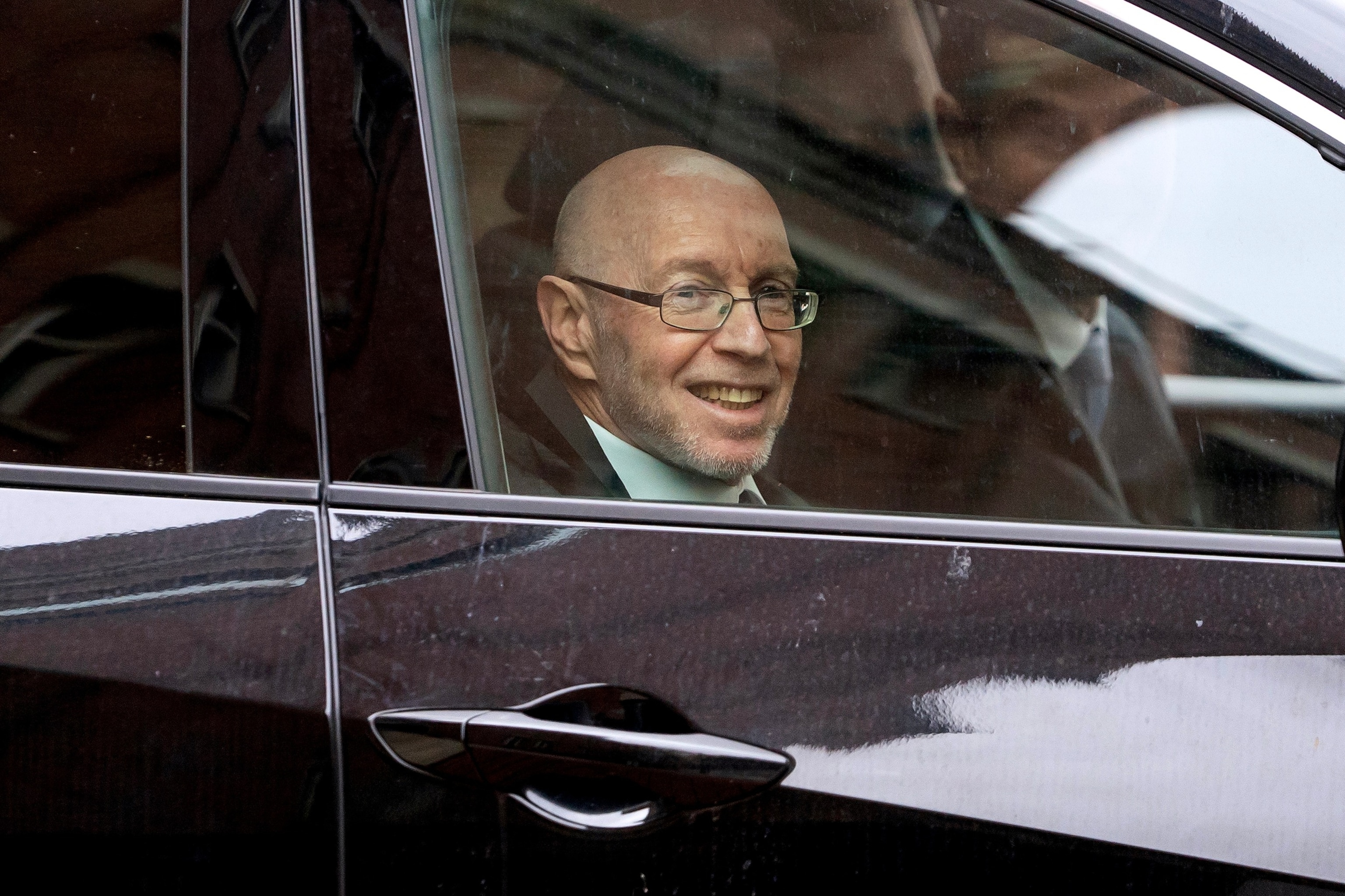 जेम्स कोनी के वकील माइकल ड्रीबेन, वर्जीनिया के अलेक्जेंड्रिया में 19 नवंबर, 2025 को कॉमी बाधा और झूठे बयान मामले में एक प्रस्ताव की सुनवाई के बाद अल्बर्ट वी. ब्रायन यूनाइटेड स्टेट्स कोर्टहाउस से चले गए।